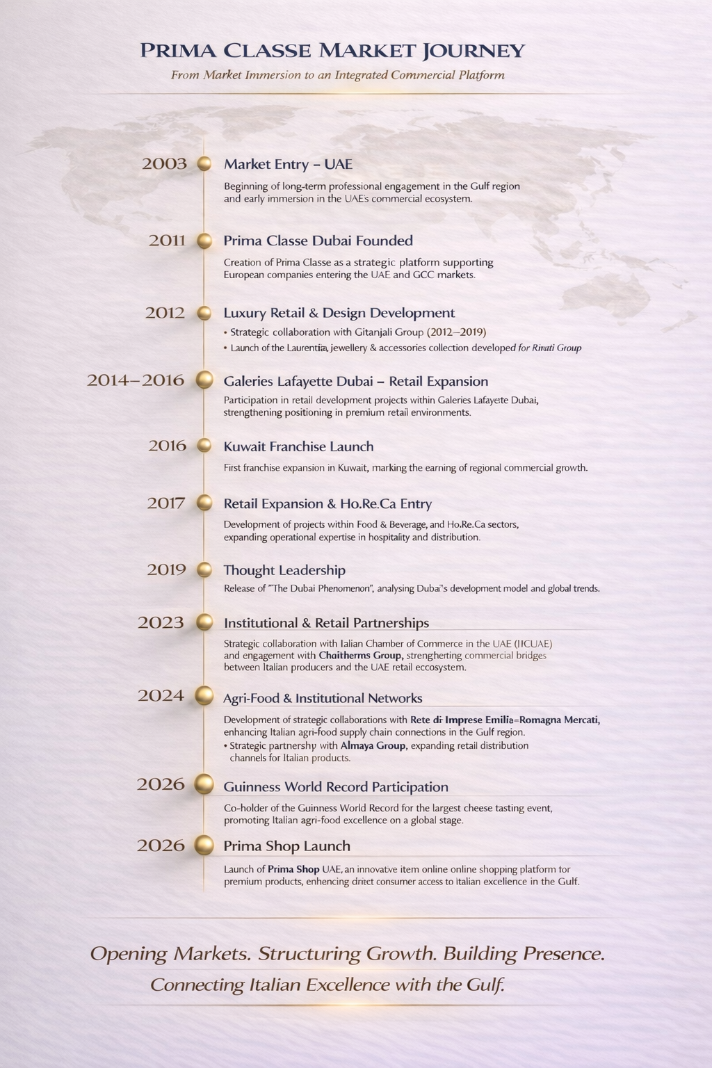 Formal partnership recognizing Prima Classe as the Chamber’s operational arm in the Gulf.